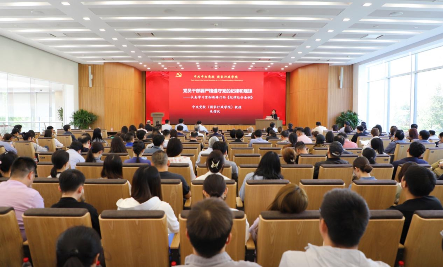 為深入學(xué)習(xí)貫徹新修訂的《中國共產(chǎn)黨紀(jì)律處分條例》,進(jìn)一步增強(qiáng)全體黨員干部的紀(jì)律意識(shí)和規(guī)矩意識(shí),推動(dòng)黨紀(jì)學(xué)習(xí)教育走深走實(shí),5月11日,中國建技邀請中央黨校(國家行政學(xué)院)教授朱諧漢作《黨員干部要嚴(yán)格遵守黨的紀(jì)律和規(guī)矩》黨紀(jì)學(xué)習(xí)教育專題講座。中國建技在京領(lǐng)導(dǎo)班子成員出席講座,黨委委員、總會(huì)計(jì)師劉羊子主持講座。