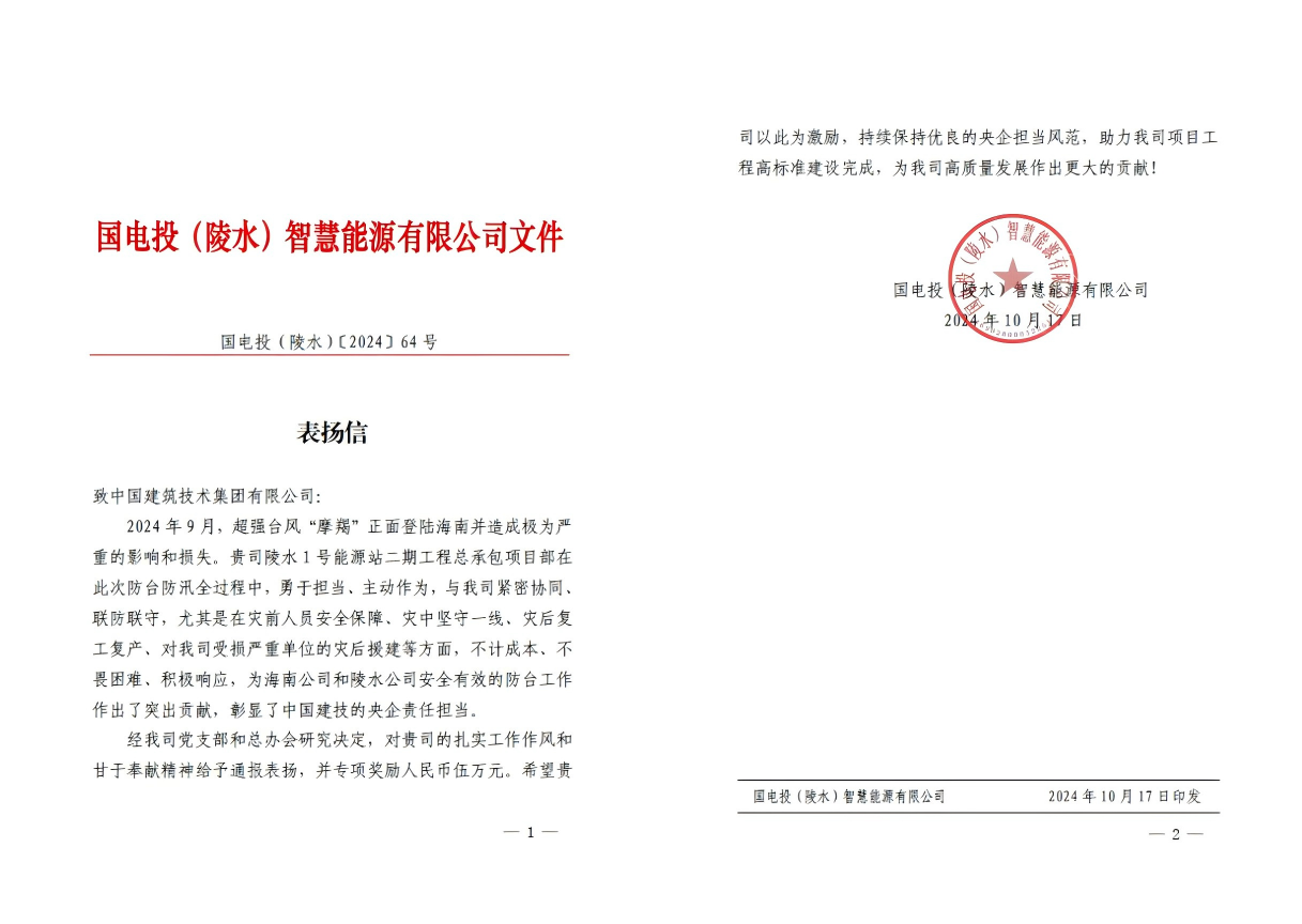項目部始終秉持“同心同行、同創(chuàng)同享”核心價值觀;以守土有責,守土盡責的責任感和強企有我的使命感,認真踐行中國建技“智筑美麗城鄉(xiāng)”的追求,不辱使命,彰顯擔當。項目部將虛心戒躁、再接再勵,為中國建技在海南自貿(mào)島建設(shè)中作出更大的貢獻。