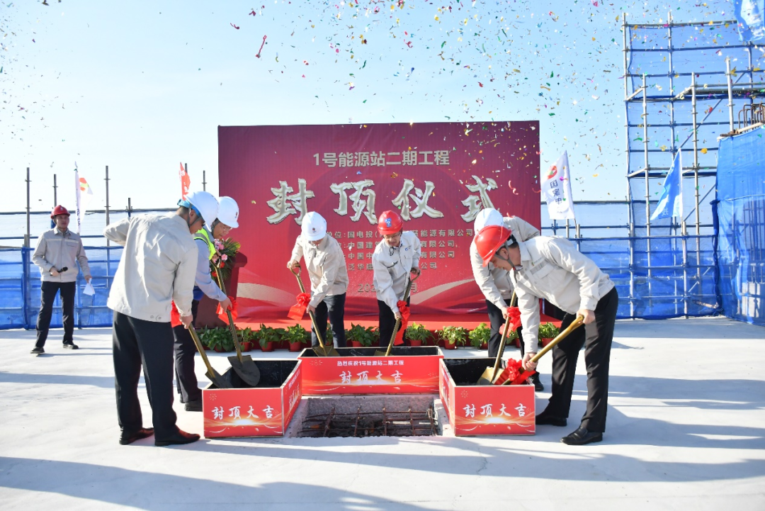 會(huì)后雙方主要負(fù)責(zé)人出席并見證海南陵水綜合智慧能源項(xiàng)目1號能源站二期工程項(xiàng)目主體結(jié)構(gòu)封頂儀式。