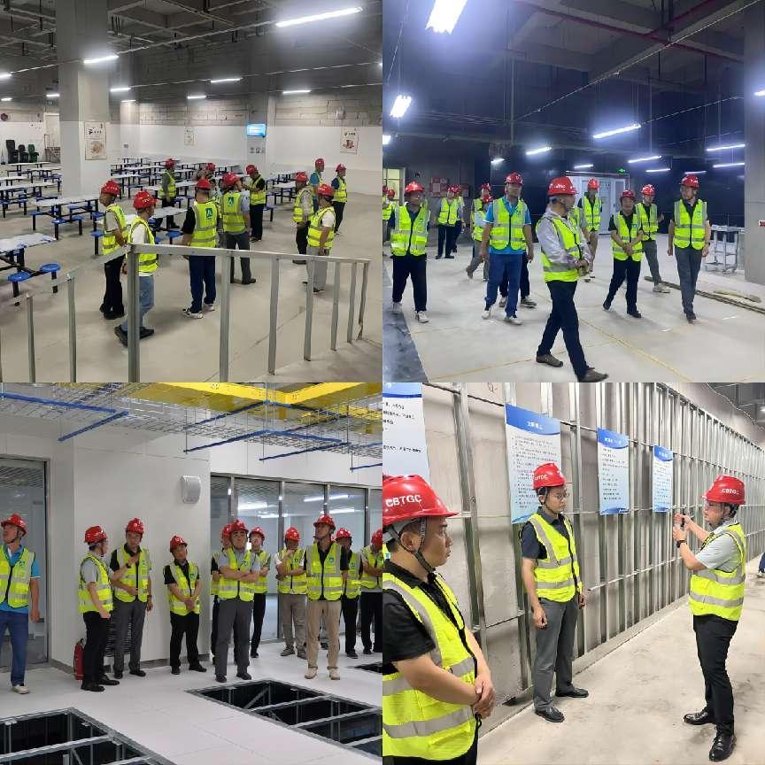 觀摩人員深入項目現(xiàn)場,實地參觀了現(xiàn)場標準化臨建、封閉式加工區(qū)、材料堆放區(qū)、安全講評臺、施工作業(yè)區(qū)、員工就餐區(qū)、辦公區(qū)、智慧化工地、高密機房樣板區(qū)等工地設(shè)施,并給予一致好評。