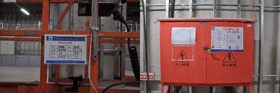 為降低因用電故障影響日常生產(chǎn)工作,臨時(shí)用電采用兩路電源供電,放射式配電,平層設(shè)置多個(gè)二級(jí)配電箱,滿(mǎn)足規(guī)范使用要求。