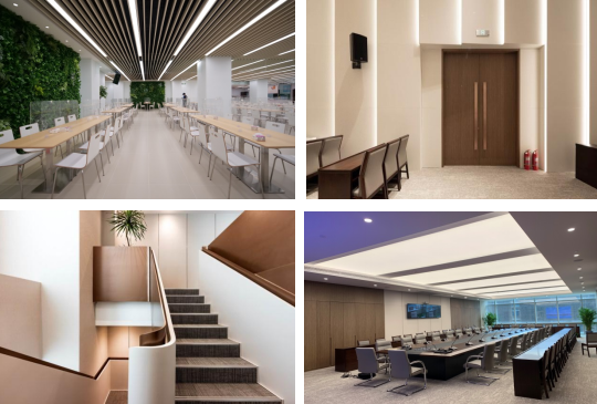 該工程總建筑面積62670.86㎡,其中實際裝修改造面積45941㎡。該項目主要施工內(nèi)容包含首層大堂,2-5層商業(yè)、會議室、報告廳、6-25層標準層辦公室、26-29層集團層辦公室、接待廳等全部工程的機電及裝修改造。