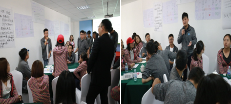 9月22日上午,在專業(yè)培訓(xùn)師的指導(dǎo)下,用貝爾賓團隊角色理論測試每位員工的團隊角色,結(jié)合該測試結(jié)果,進行了一場充滿參與性、互動性、實戰(zhàn)性、競爭性的沙盤模擬訓(xùn)練。新員工們分組抽簽決定各自的所處的地形情況及資源狀況,通過小組合作產(chǎn)出產(chǎn)品并到統(tǒng)一的市場交易獲得效益,通過效益的多少等多重指標衡量經(jīng)營的整體狀況。培訓(xùn)中,小組成員充分地展示出了當(dāng)代年輕人開闊的思維方式,會場熱鬧紛紛。他們思維活躍、分工有序,在充分分析內(nèi)外形勢的前提下,有效經(jīng)營,各小組均獲得了十分可觀的經(jīng)營效果,得到了培訓(xùn)團隊的一致好評,最后每個小組的精彩自我點評再次將培訓(xùn)推向高潮。會后大家意猶未盡,午餐時分依然在探討思路和方法。