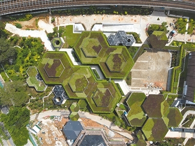 近年來(lái),新加坡注重應(yīng)對(duì)氣候變化,不斷提高建筑的環(huán)境可持續(xù)標(biāo)準(zhǔn),對(duì)綠色建筑標(biāo)志認(rèn)證設(shè)置了最高等級(jí)——綠色標(biāo)志白金獎(jiǎng)。三巴旺綜合社區(qū)中心項(xiàng)目以取得綠色標(biāo)志白金獎(jiǎng)為目標(biāo),將綠色環(huán)保理念貫穿于項(xiàng)目設(shè)計(jì)和施工的各個(gè)環(huán)節(jié)。中心的建筑屋頂實(shí)現(xiàn)了無(wú)土植物全覆蓋,在新加坡常年炎熱的氣候下,這種設(shè)計(jì)不僅外觀(guān)上綠意盎然,還可以起到降溫、吸音、降噪等作用;園林區(qū)域的降雨排水系統(tǒng)運(yùn)用石塊、碎石、植物等天然材料,將雨水匯集起來(lái)并層層過(guò)濾沉降泥沙,營(yíng)造出天然河道景象,既美觀(guān)又能凈化水源;項(xiàng)目還采用了大量預(yù)制構(gòu)件,雖然對(duì)施工精度提出了很高的要求,但可以最大程度減少施工中產(chǎn)生的建筑垃圾。