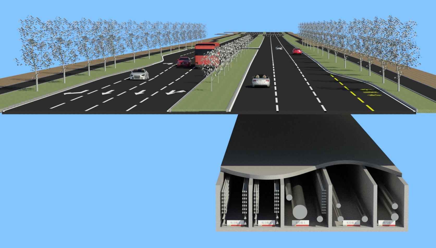 本管廊工程斷面最寬達(dá)到16.7米。其中涉及中壓、次高壓燃?xì)?、通信、再生水、給水、電力電纜等多種類管線。