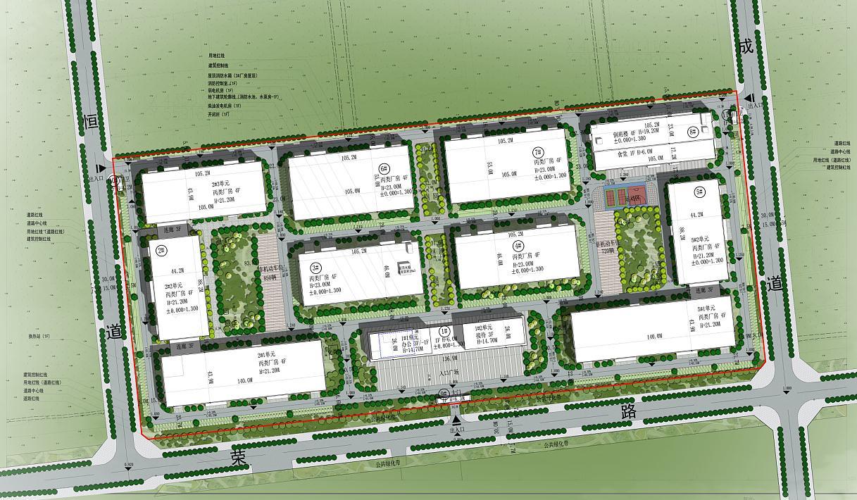 蘆臺農(nóng)業(yè)產(chǎn)業(yè)融合示范基地項(xiàng)目,位于蘆臺經(jīng)濟(jì)開發(fā)區(qū)富恒道東側(cè)、榮錦路南側(cè)、富成道西側(cè)、榮昌路北側(cè),是一個(gè)集設(shè)計(jì)與施工總承包于一體的發(fā)展項(xiàng)目。該項(xiàng)目的用地布局規(guī)整,形狀接近正方形,東西向長約545米,南北向?qū)捈s246米。項(xiàng)目南側(cè)緊鄰榮昌路,規(guī)劃有一條10米寬的城市公園綠地,周邊建筑數(shù)量有限。項(xiàng)目的主要建設(shè)內(nèi)容包括辦公樓、標(biāo)準(zhǔn)廠房、倒班樓、食堂、設(shè)備房、門衛(wèi)管理用房等,共計(jì)11棟建筑。其中,包含6棟新建的四層丙類標(biāo)準(zhǔn)廠房、1棟新建的三層辦公樓(局部帶有地下一層)、1棟新建的四層倒班樓(首層設(shè)有食堂)以及3棟單層門衛(wèi)房。此外,新建的附屬配套工程涵蓋了管網(wǎng)工程、道路硬化、綠化工程等。