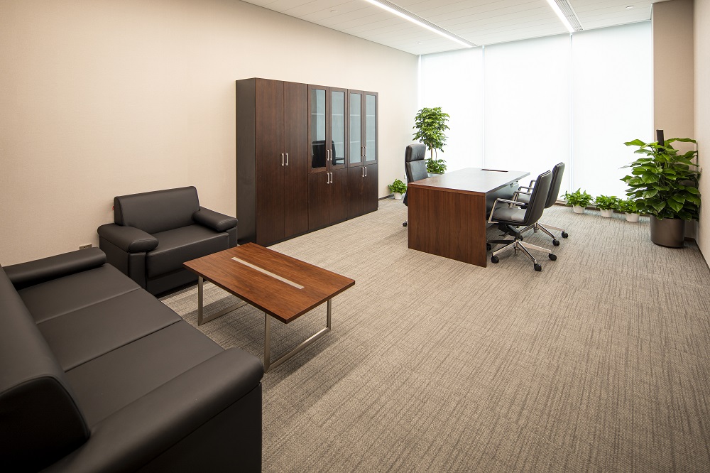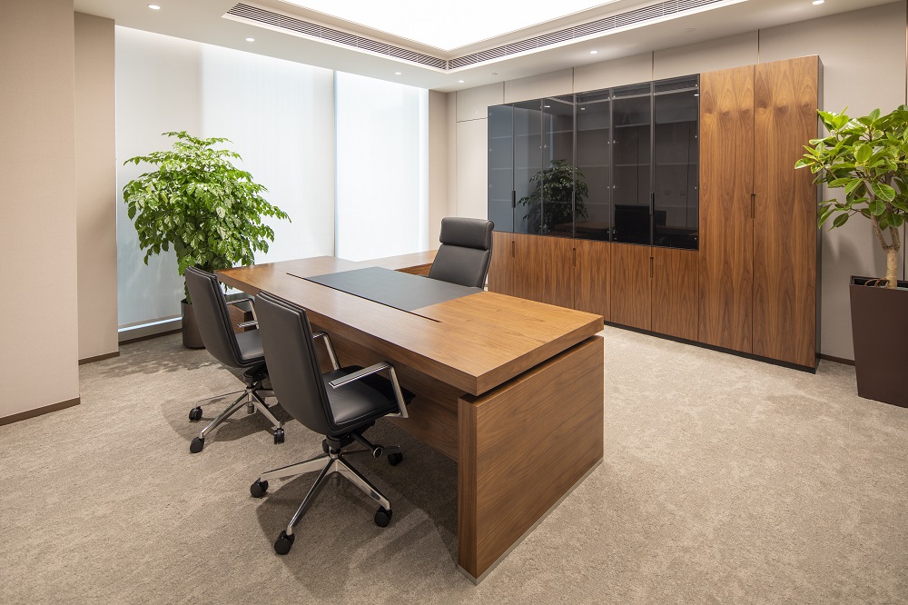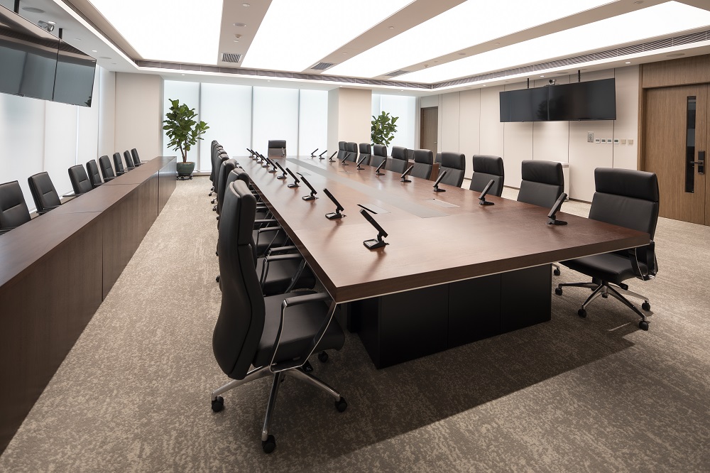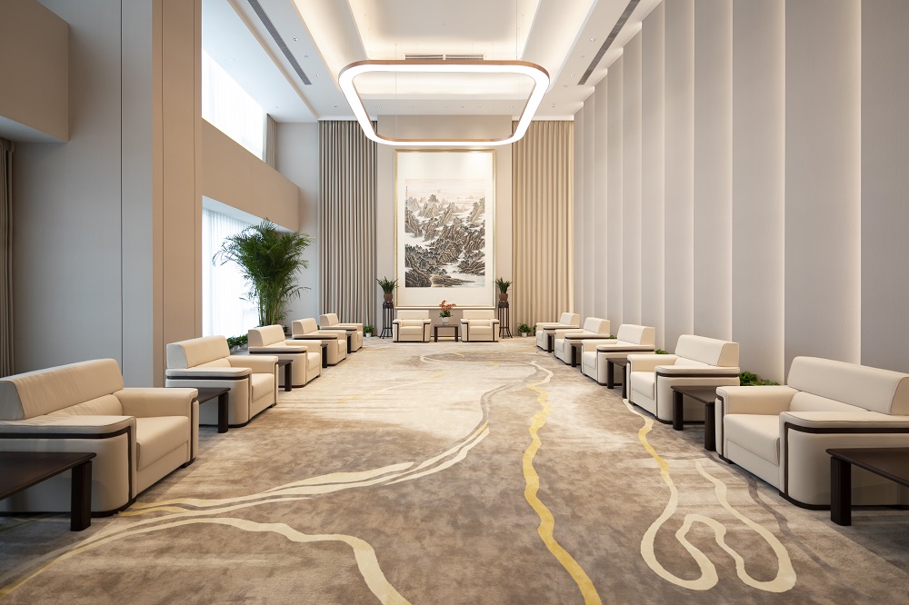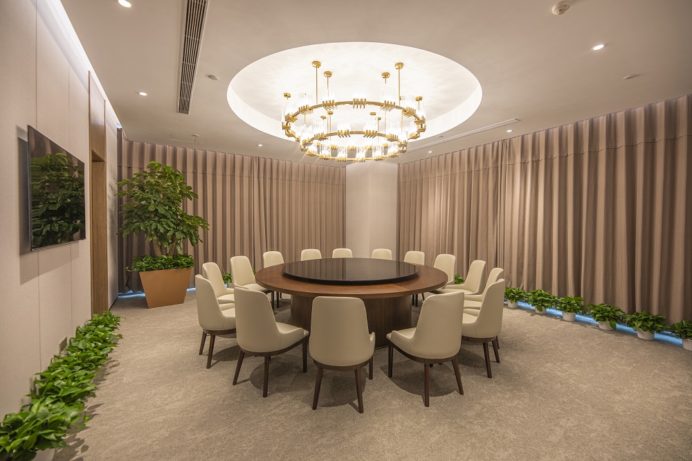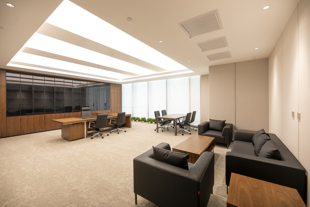 本次改造根據(jù)使用單位的需求,在維持建筑外立面和室外景觀的前提下,對原有建筑進行了平面重新布局及裝飾裝修,并根據(jù)新的使用功能對機電系統(tǒng)進行了調(diào)整。改造后的建筑滿足現(xiàn)行的建筑標準規(guī)范,并滿足使用方的現(xiàn)代辦公需求。以“一級央企、國內(nèi)一流、具有國際影響力”的大國企業(yè)總部形象服務全國并面向國際舞臺,所以重點打造莊重、現(xiàn)代、統(tǒng)一、大氣、低調(diào)、品質(zhì)的空間特點,使辦公空間代表大國形象、展示央企文化;延續(xù)傳統(tǒng)國企表現(xiàn)出的典型特征,提升內(nèi)部空間整體品質(zhì)。圍繞設計理念構思方案,把握規(guī)劃布局的宏觀標準,定位企業(yè)形象,提煉設計手法,營造空間氛圍;對大廳、會議、報告廳、會客、餐廳、辦公等重點空間深化設計匹配一級央企的總部形象。