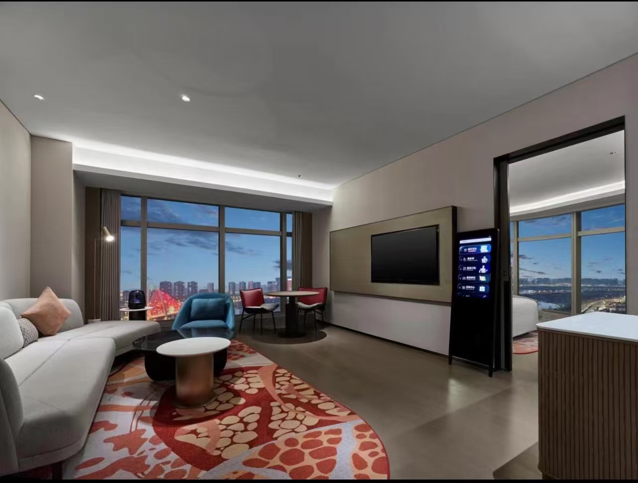 酒店擁有溫馨舒適的客房和套房。北側(cè)的房間均可從落地窗中欣賞灞河網(wǎng)紅橋的絕美夜景。酒店擁有一個可容納180人就餐的心窩餐廳,其中包括一個露臺吧、兩個中餐廳包間和一個時尚的大堂吧,旨在為商務(wù)客人和周邊社區(qū)提供特色的餐飲體驗。酒店設(shè)700余平方米會議及活動空間,包括一個約580平米、挑高8米的無立柱宴會廳,一個約200平米的多功能廳。無立柱宴會廳擁有約200平米寬敞明亮的宴會前廳。所有會議空間可靈活組合,皆配備專業(yè)高品質(zhì)的影音設(shè)備、高清LED、高速Wifi。會議空間與大堂分隔,賓客可直接從大堂乘坐扶梯進入宴會前廳,適合承接各種規(guī)模的商務(wù)會議及宴會。
