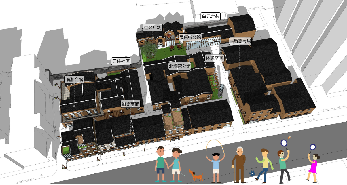 3)活力發(fā)展:評(píng)估歷史風(fēng)貌并梳理文化脈絡(luò)、進(jìn)行具有針對(duì)性的保修改拆建、合理導(dǎo)入業(yè)態(tài)形成自身造血鏈。