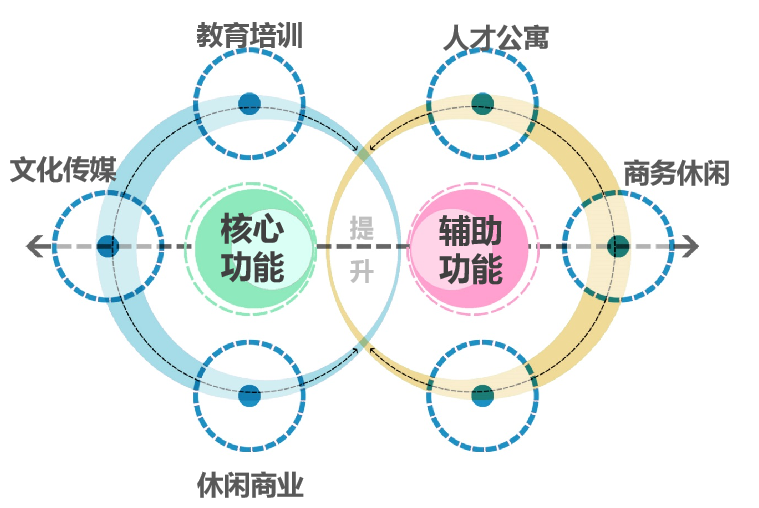 金融商務(wù)產(chǎn)業(yè)協(xié)同發(fā)展——重點(diǎn)發(fā)展現(xiàn)代生產(chǎn)性和生活性服務(wù)業(yè),如總部辦公、商務(wù)商業(yè)、科創(chuàng)文創(chuàng)、會(huì)議會(huì)展、精品購(gòu)物(OUTLESS)、特色餐飲等。