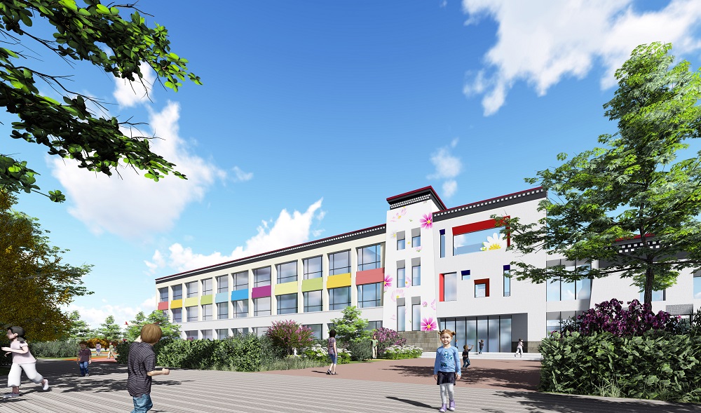 幼兒園建設(shè)響應(yīng)國家相關(guān)政策,為幼兒提供獨(dú)具特色空間的環(huán)境,堅(jiān)持美觀的同時,又能滿足使用功能的合理性。整體設(shè)計(jì)以現(xiàn)代簡潔的處理手法,在充分考慮經(jīng)濟(jì)及美觀性的前提下,體現(xiàn)藏區(qū)建筑特色。立面采用虛實(shí)結(jié)合的處理手法,以橫向線條體聯(lián)系建筑各個部分,強(qiáng)調(diào)活動單元體量,創(chuàng)造富有秩序的立面節(jié)奏,通過明確的進(jìn)退關(guān)系區(qū)分各功能區(qū)塊的轉(zhuǎn)換,塑造強(qiáng)烈的光影變化,為孩子提供自由靈活的生活活動場所。
