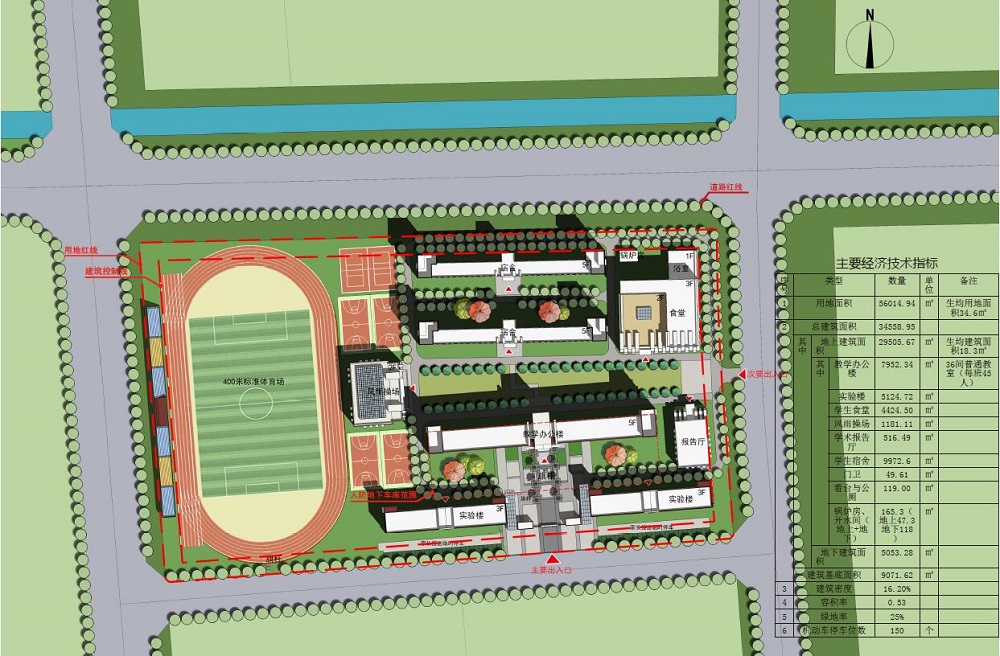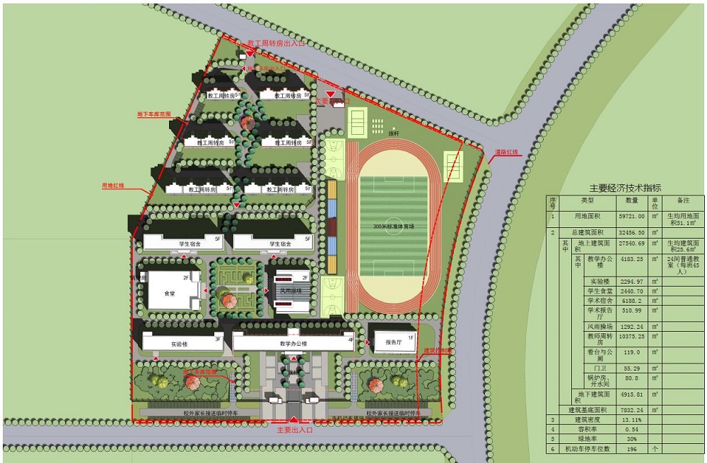 ???本項(xiàng)目用地位于日喀則市經(jīng)濟(jì)開發(fā)區(qū),辦學(xué)規(guī)模為24班的小學(xué),包括教學(xué)樓、實(shí)驗(yàn)樓、食堂、風(fēng)雨操場、宿舍樓等建筑。規(guī)劃建設(shè)用地為59721㎡,建筑總面積為32456.5㎡,其中地上建筑面積27540.69㎡,地下建筑面積4915.81㎡。建筑密度13.11%,容積率0.54,綠地率30%,機(jī)動車停車位數(shù)196個。南側(cè)、東側(cè)、北側(cè)為規(guī)劃道路,西側(cè)緊鄰規(guī)劃曲布幼兒園和園丁苑。