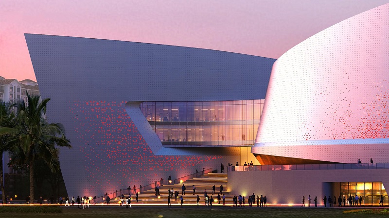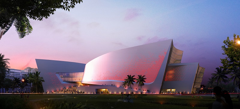 海南省非物質(zhì)文化遺產(chǎn)展示中心項目位于海南省海口市瓊山區(qū),總建筑面積52180平方米,建筑高度42米,是海南省十大重點公共文化工程首批落地實施項目。該項目為瓊劇院、非遺博物館及藝術中心三大功能合一的文化綜合體,主要設有大劇場、實驗小劇場、綜合排演廳、黎錦館、非遺陳列館、非遺體驗傳習館、非遺傳承人技藝活態(tài)展示館、藝術中心等多種類型公共文化設施。