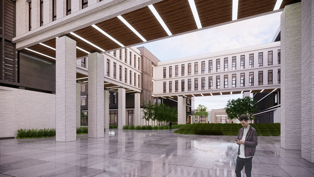 該項目采用“九宮格”式布局模式,由共享連廊將所有建筑聯(lián)系到一起,打造“綜合體”式教育中心,提高使用效率。